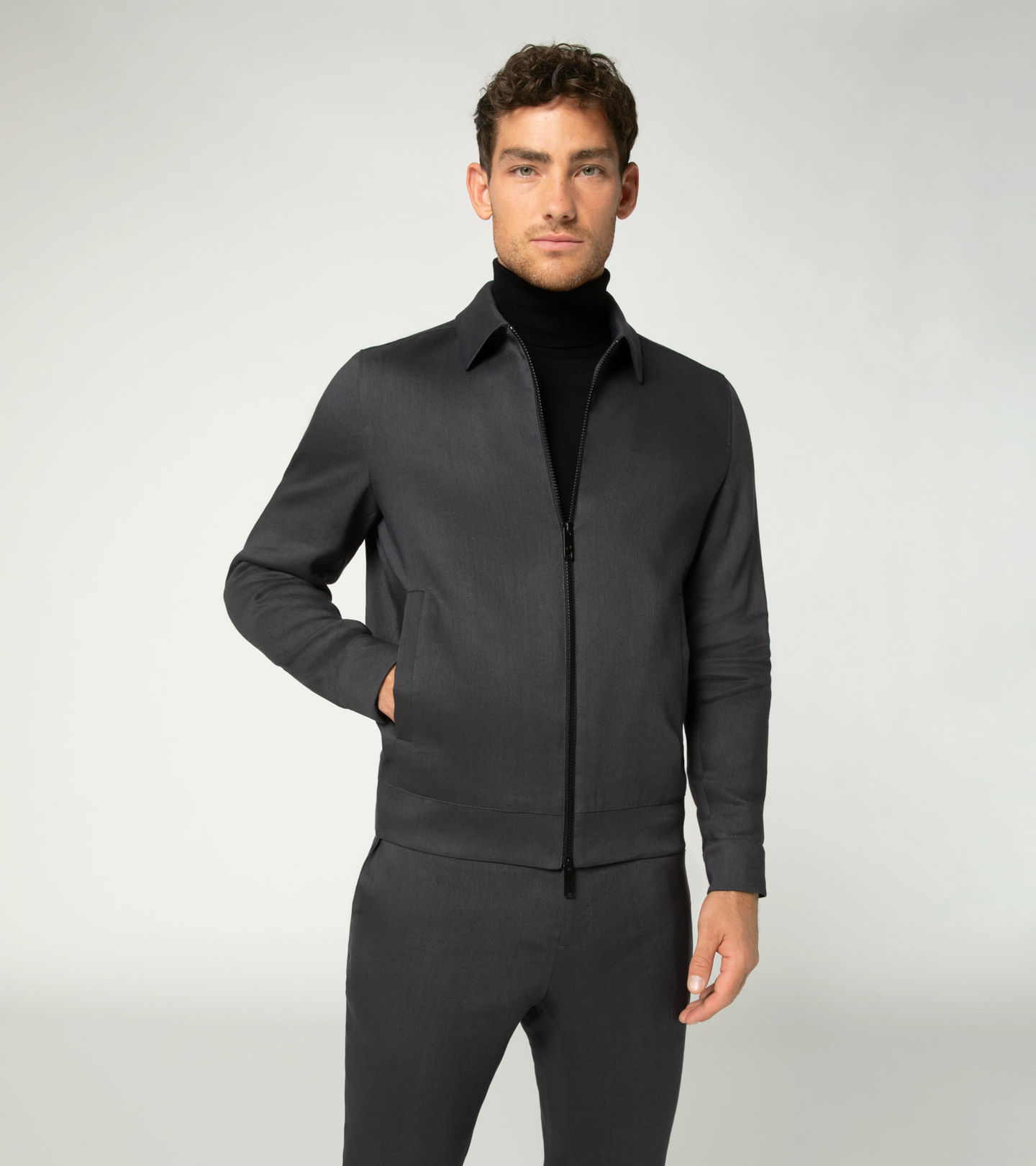 The best of both worlds: made from the finest Italian fabric with an elastic waistband, the straight-cut blouson jacket combines sportiness with elegance and comfort with business. The concealed pockets at hip height and the chest pocket with zip underline its purist look. The two-way zip, custom branded zip pulls and PD Icon jacquard lining are sophisticated details. For all-over athleisure, the blouson goes perfectly with the active driving trousers.