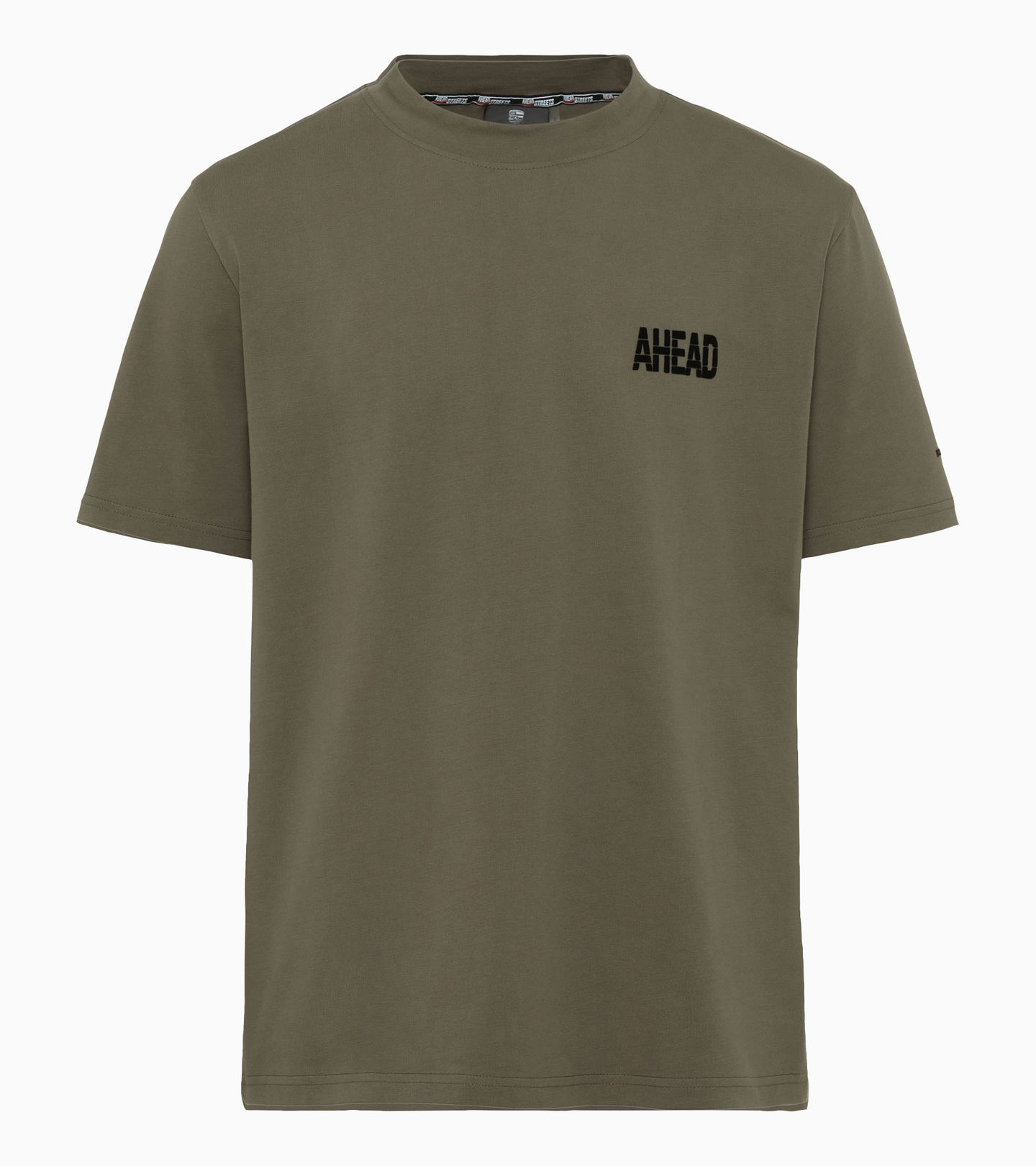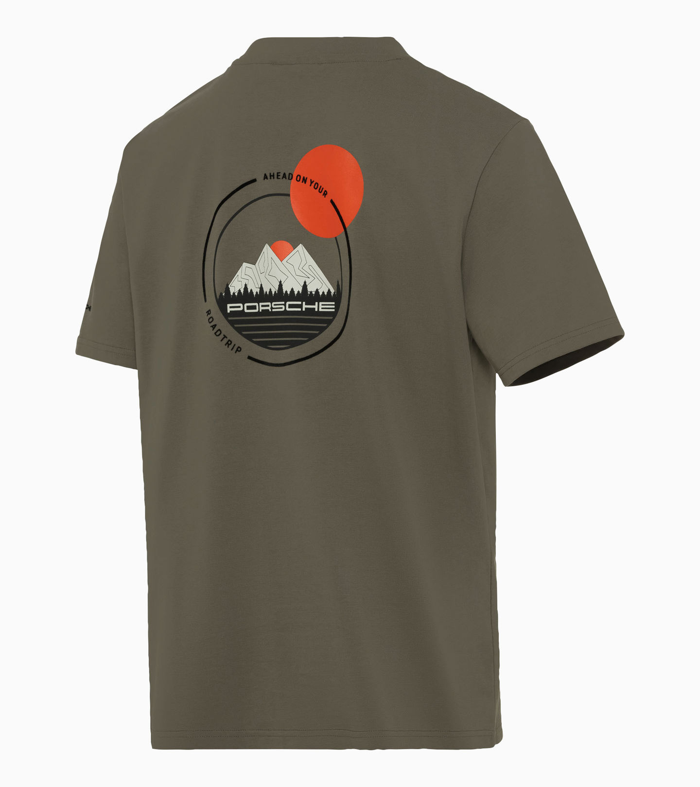 Road trip meets lifestyle: the AHEAD Collection combines pioneering spirit and a thirst for adventure with iconic design. The T-shirt made of high-quality cotton features a wide collar and a slightly boxy and loose fit. 'AHEAD' and 'Porsche' lettering on the left side of the chest and left sleeve add special highlights. A large print combining screen print and flock on the back completes the design.