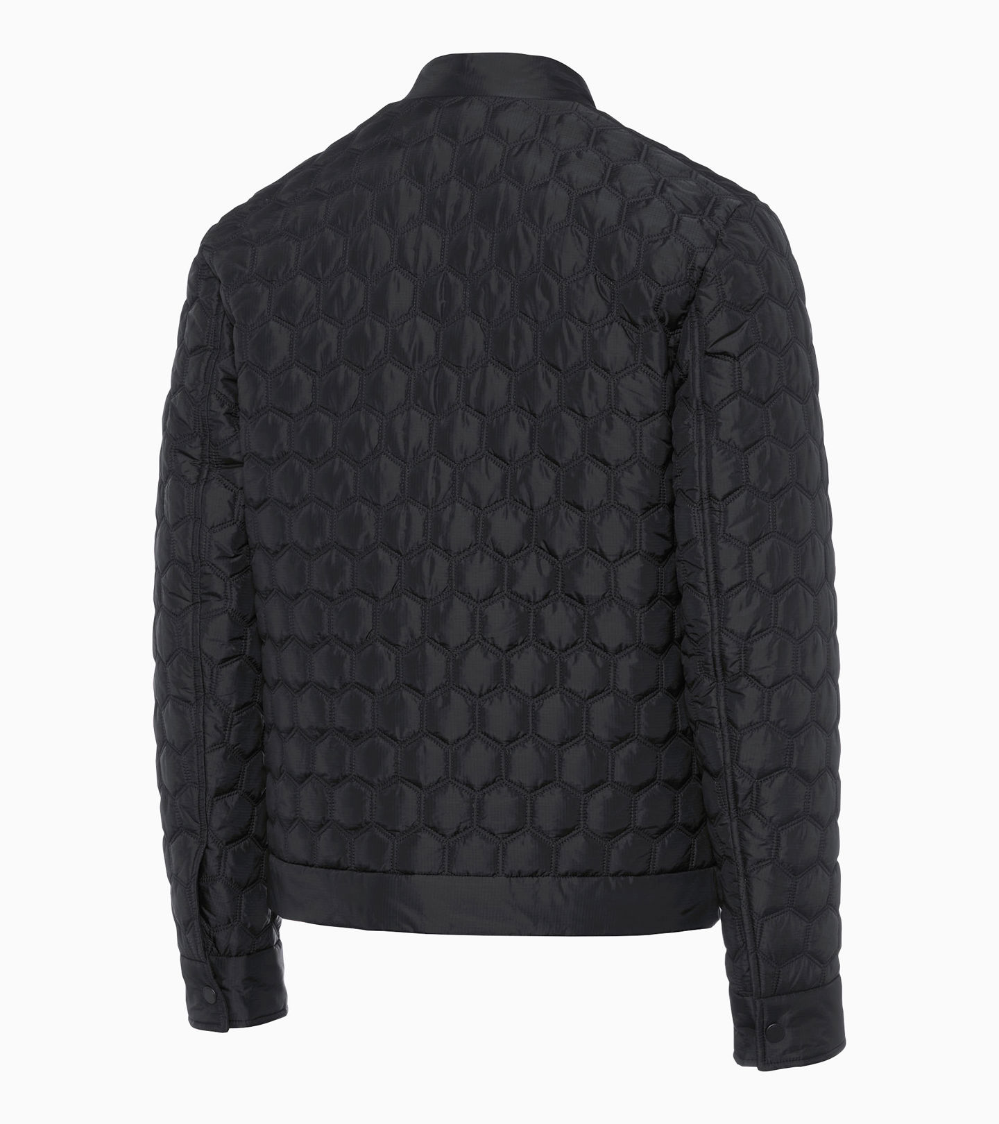 Modern jacket featuring distinctive hexagon quilting with super lightweight, down-free filling and concealed zip pockets. Made in Europe.