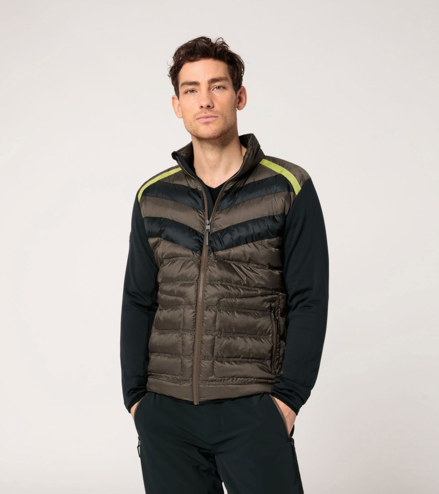 Designer ski midlayer jacket from the exclusive PORSCHE HEAD Collection. With padded stand-up collar and brushed power stretch for back and sleeves.